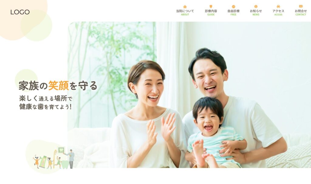 テーマカラーはグリーンかオレンジ。信頼感・優しさ・柔らかさのあるサイト。