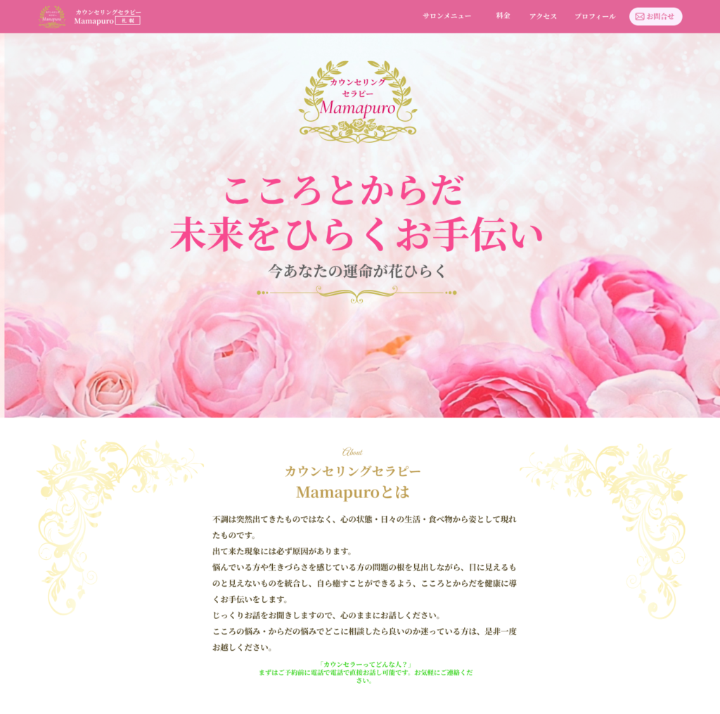綺麗な雰囲気で制作。あしらいやロゴは少し高級感を入れました。