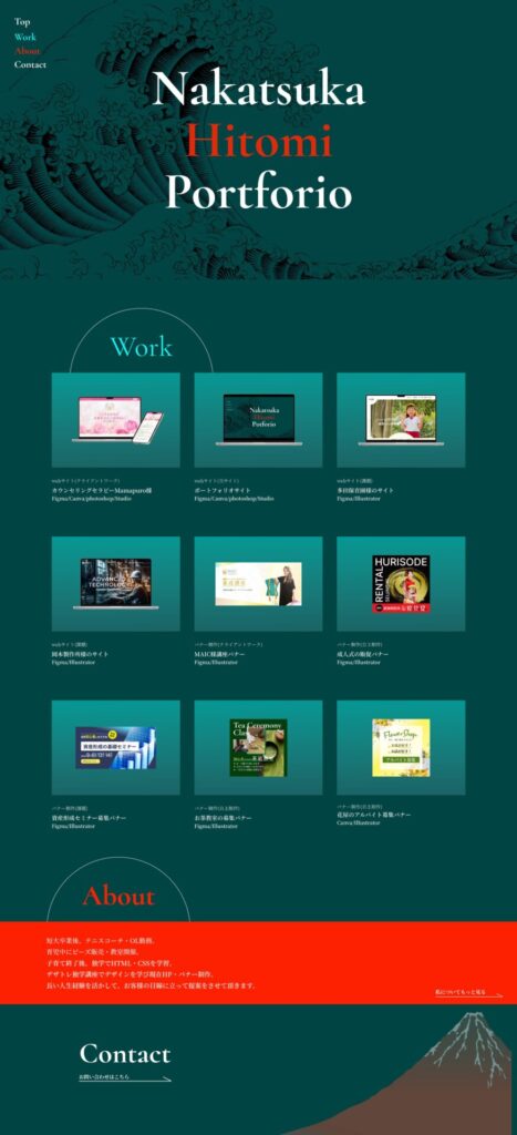 下の赤富士の配置がレスポンシブにした時うまくいかず何度も調整しました。